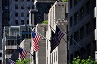 Dans la Sunken Plaza du Rockefeller Center, la statue de bronze doré de Paul Manship, représentant Prométhée, derrière laquelle est écrite la phrase d’Eschyle : “Prometheus, teacher in every art, brought the fire to Earth that hath proven to mortals a means to mighty ends.”