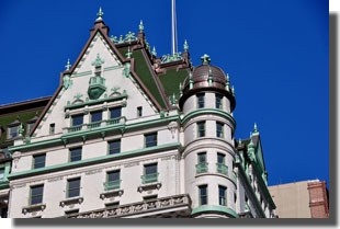 De style dit Renaissance française, le Crown Building, construction à structure d’acier signée Warren & Wetmore, est terminé par un toit en pyramide octogonale aux décorations dorées.